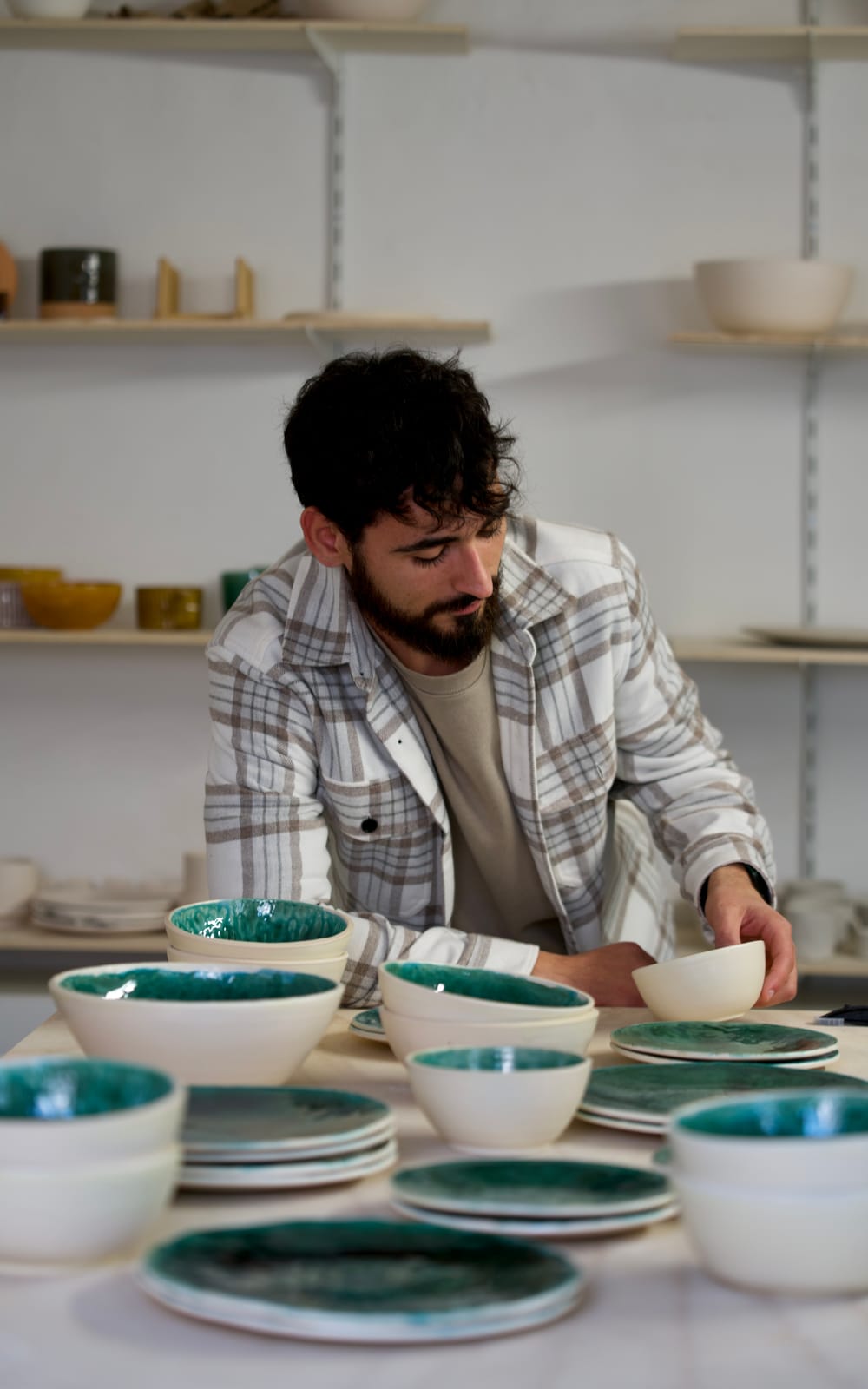 Miquel Coll, born in 1997 in Palma de Mallorca, discovered his passion for ceramics in 2019, which led him to launch his own venture, M·Ceramics.